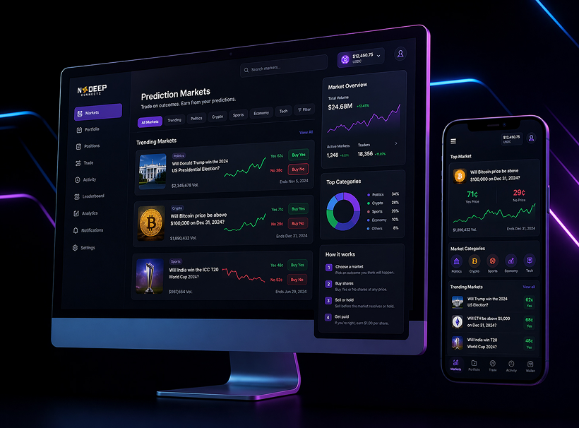 NxDeep Connectz is a leading prediction market development company delivering scalable solutions for accurate forecasting. We offer expert services in building secure and high-performance platforms, including prediction market platform development, along with advanced solutions in prediction market software development. Our team also provides reliable prediction market app development to help businesses turn insights into actionable market data.